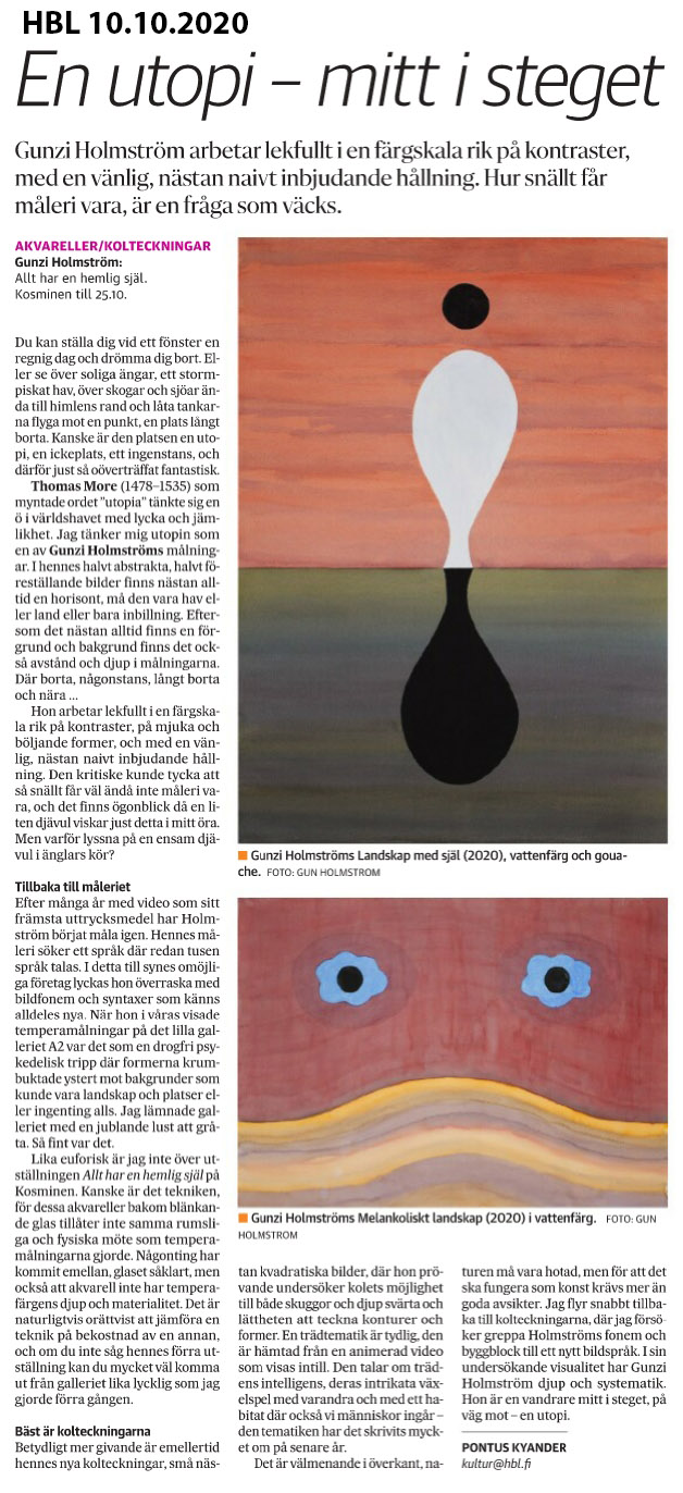 I was invited by the Kosminen Gallery in Helsinki to exhibit some new works in autumn 2020. I showed paintings, drawings and an animation.